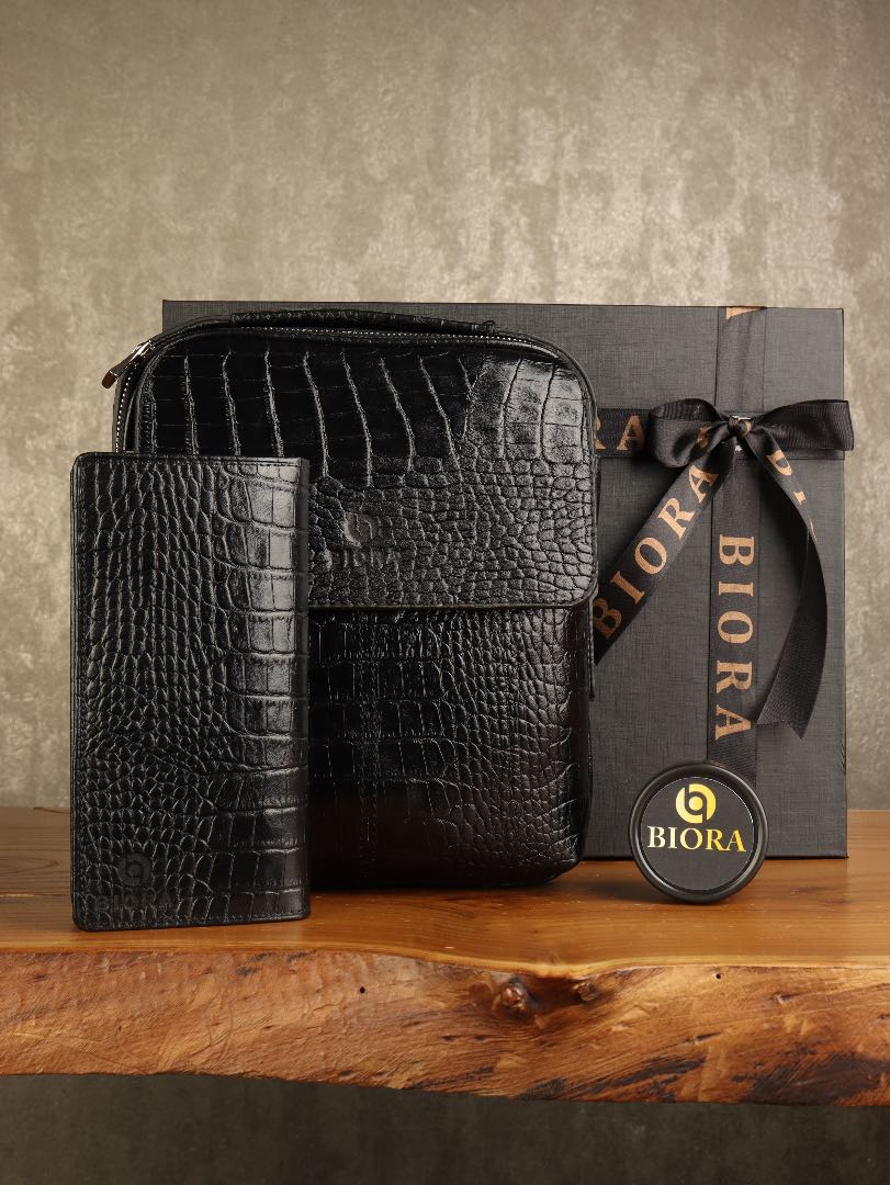 کیف دوکاره مردانه چرم طبیعی کروکودیلی بیورا سایز بزرگ مدل za21